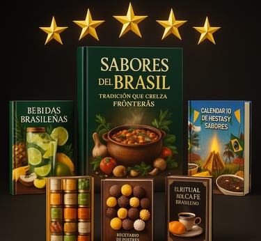 Recibirás una colección gastronómica completa, compuesta por recetas paso a paso, guías culturales y secretos culinarios de los platos más emblemáticos de Brasil: